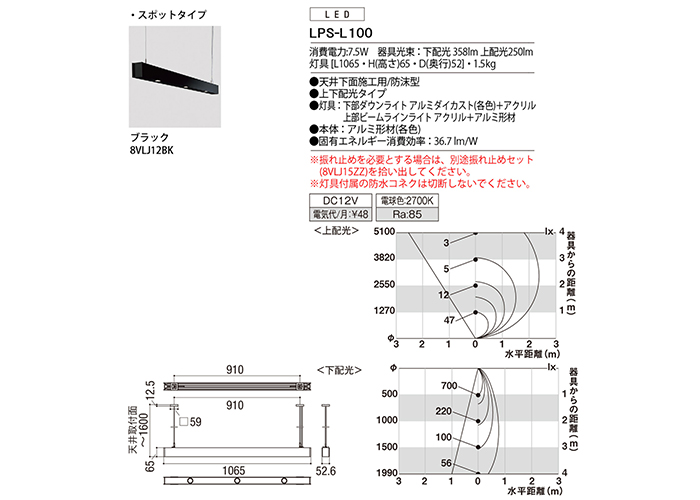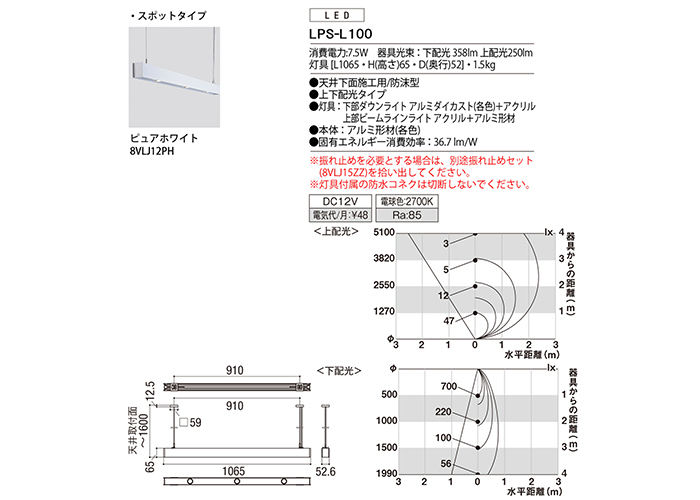 ※LEDには個体差があるため、同一品番商品でも商品ごとに発光色、明るさが異なる場合があります。また、LEDの光源寿命は約40,000時間です。