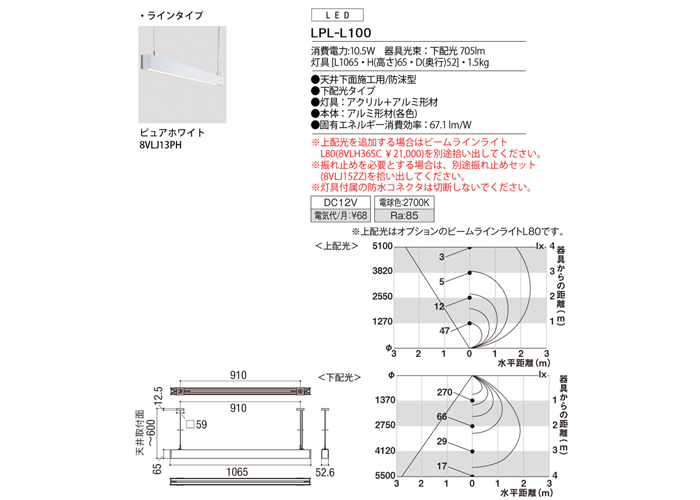 ※LEDには個体差があるため、同一品番商品でも商品ごとに発光色、明るさが異なる場合があります。また、LEDの光源寿命は約40,000時間です。