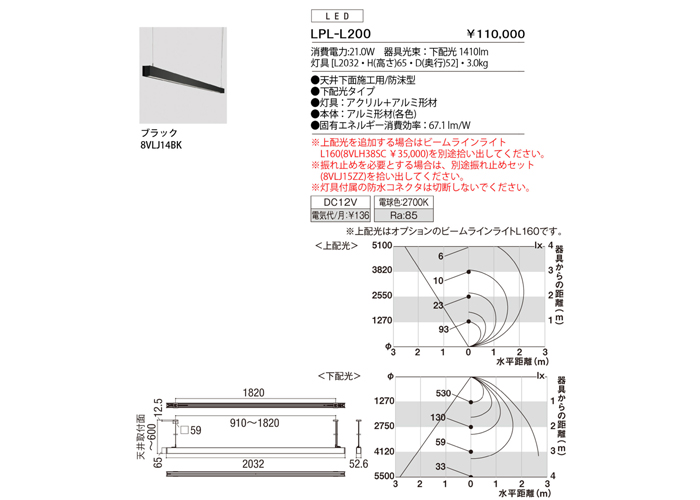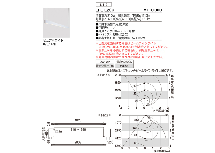 ※LEDには個体差があるため、同一品番商品でも商品ごとに発光色、明るさが異なる場合があります。また、LEDの光源寿命は約40,000時間です。