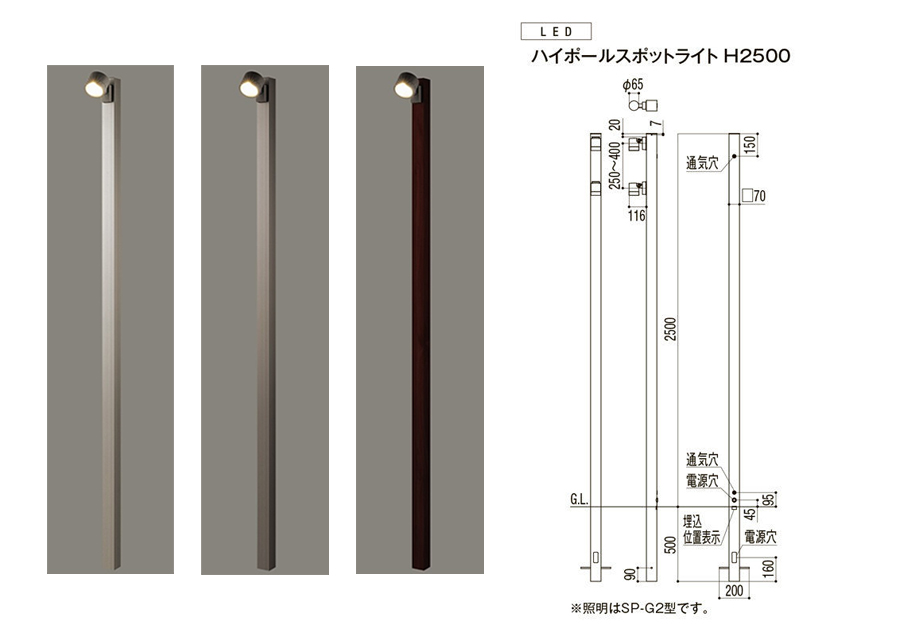 ※①のスポットライトは「SP-G1型」「SP-G2型」「SP-G3型」の3種類の中からご選択いただけます