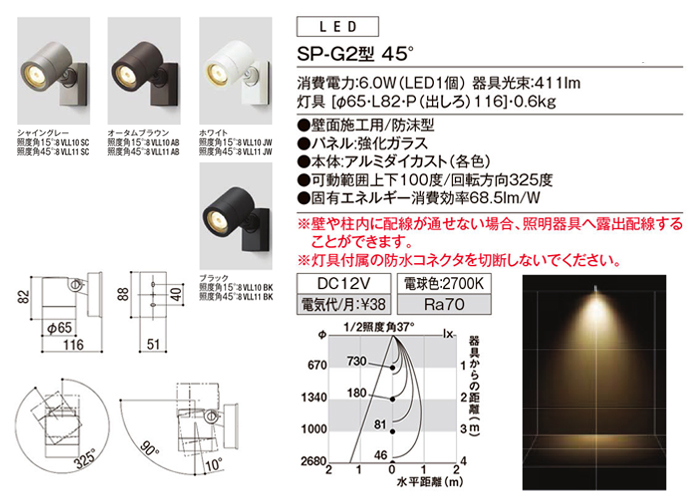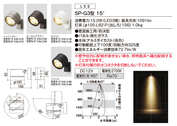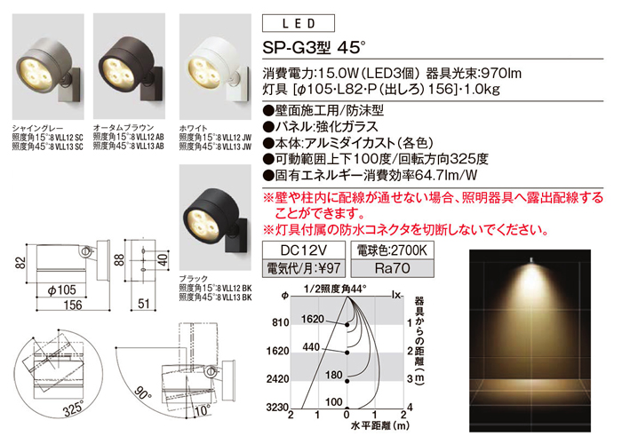 ※SP-G2型とSP-G3型については、照度角が「15°」と「45°」からお選びいただけます